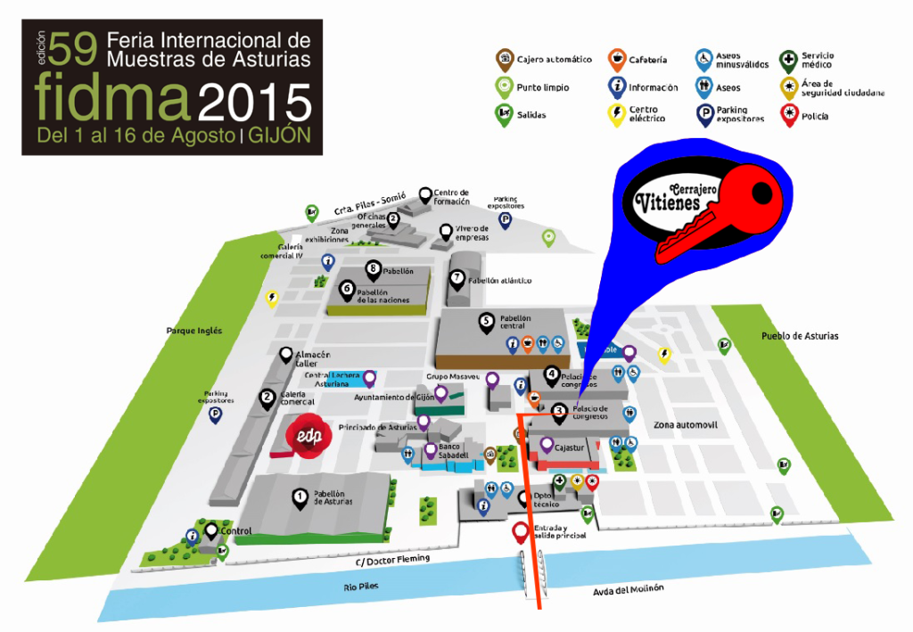 Cerrajero Vitienes, como cerrajeros de Gijon, estará en el stand "impulsa empresas" en la ferian internacional de muestras de Asturias (FIDMA 2015), pabellon 3-4.